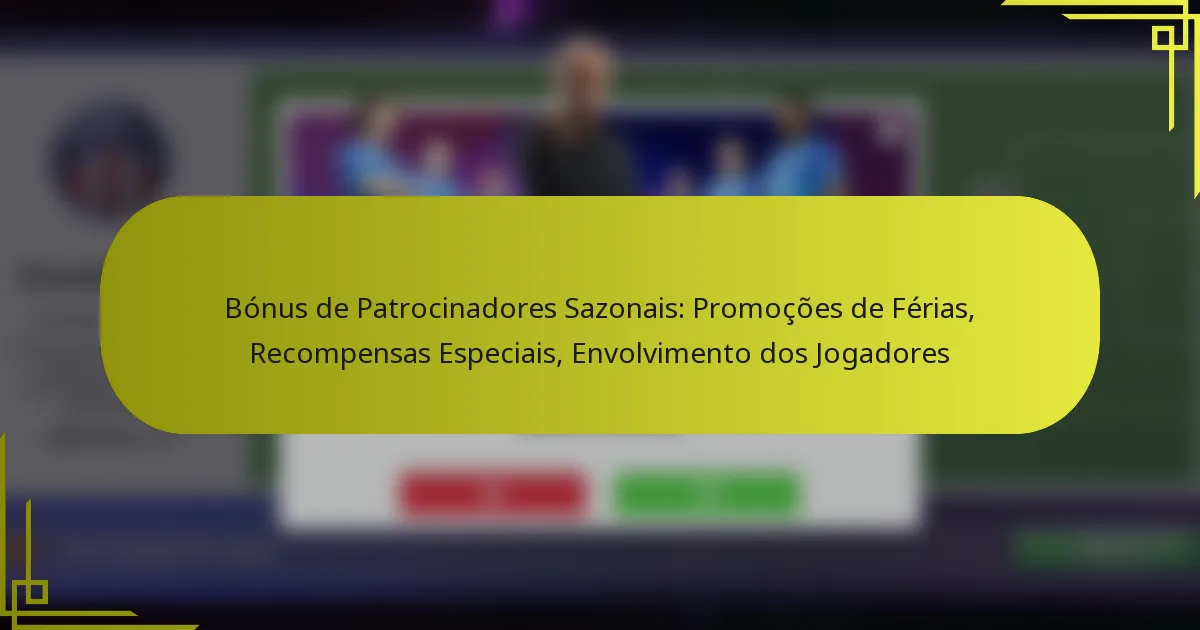 Os bónus de patrocinadores são incentivos dados aos jogadores por completar tarefas específicas ou cumprir certos critérios dentro do jogo. Podem variar em tipo, incluindo recompensas financeiras, melhorias de jogadores ou itens especiais que ajudam no desenvolvimento da equipa.